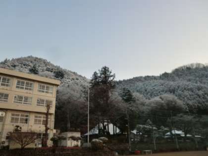 雪景色の朝を迎えました。