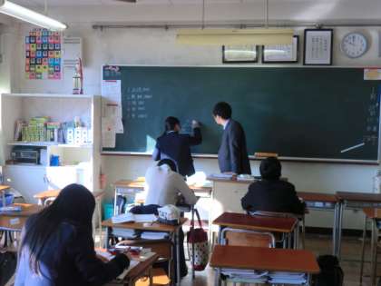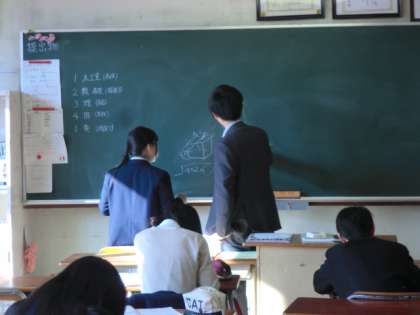 黒板で解説を受けています。