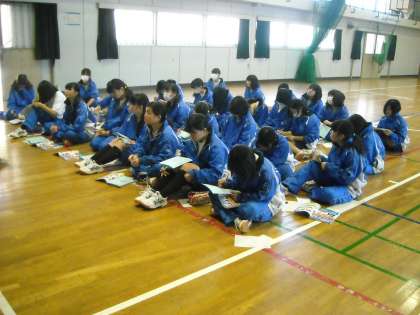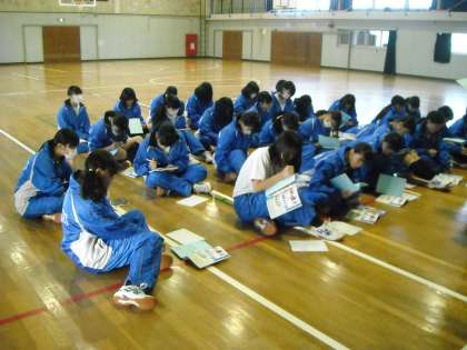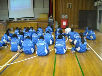 女子は体育館で創作ダンス発表会までのスケジュールを確認していました。