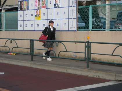 上からも徒歩や自転車や車の送迎で大勢が登校してきます。