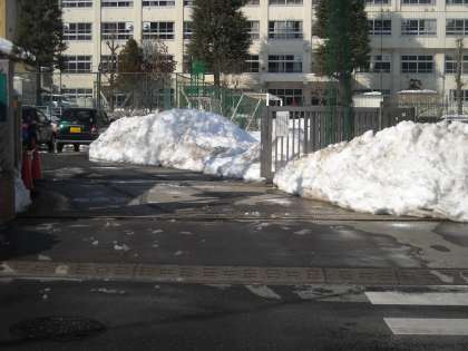 まだ校庭は真っ白ですが、午後の雪かきも終わりました。