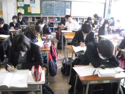 先生が病気でお休みのためクラス単位の授業です。