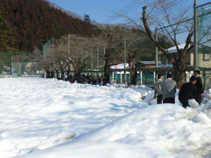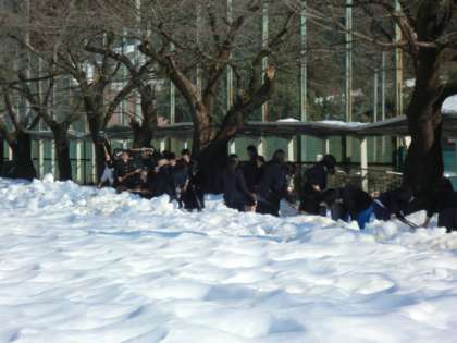 自転車通学の再開に向け、自転車置き場の雪かきをしました。