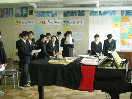 音楽室で発声練習をしていました。