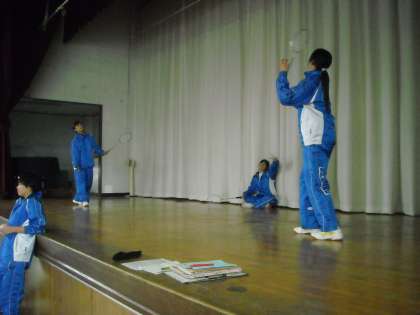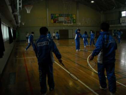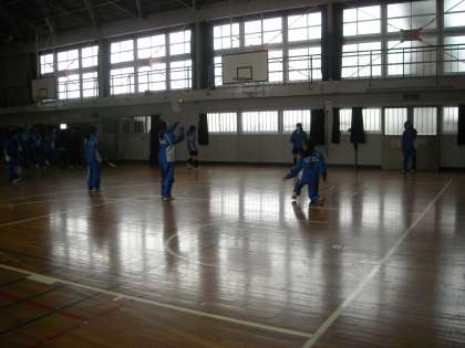 都立受験で生徒が少ないので、全クラス合同で体育館で行いました。