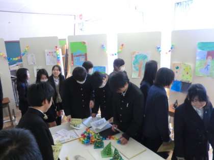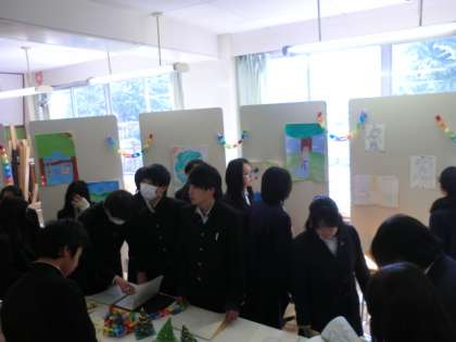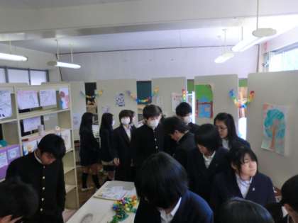 展示発表会が行われ、生徒はクラスごとの見学です。