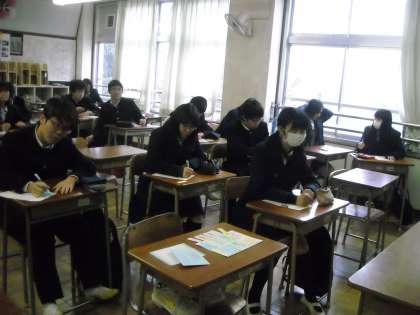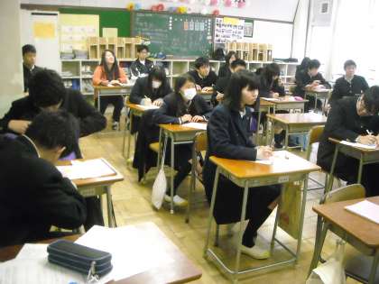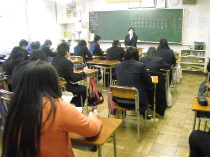 卒業記念スピーチです。担任の斉藤先生も聞きに来ていました。