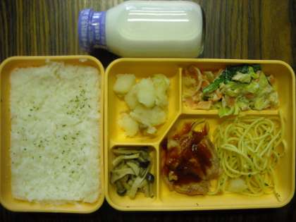 バターライス・バーベキュードチキン・ペペロンチーノ・ツナマヨサラダ・