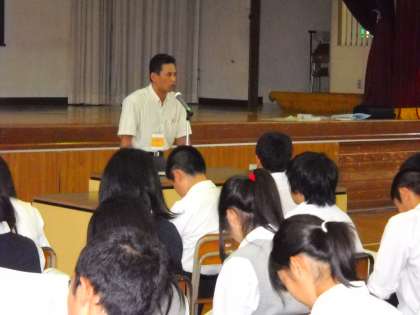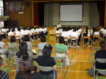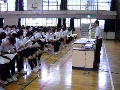 あいにく雨が降りはじめ、湿度が上がってくる中でしたが、生徒は最後まで集中して聞いていました。