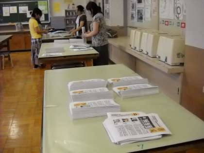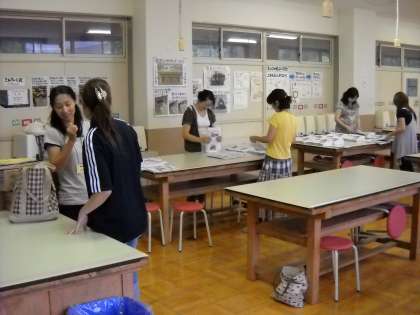 予定時間内に製本を終え、各クラスの棚に配布することができました。