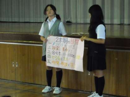 更に、2学期の学級目標をそれぞれ五つに絞って発表しました。