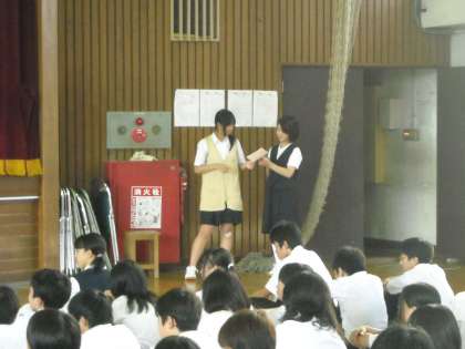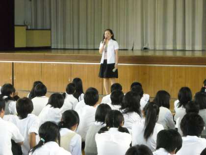 司会進行も学級委員が担当し、暑い中、静かに話を聞くことが出来て、2年生の成長の跡が伺えました。