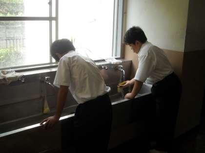 明日と終業式を残すだけとなり、4ヶ月間お世話になった校舎の大掃除を全校で行いました。