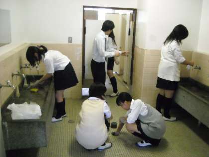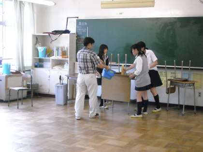 先生方も生徒と一緒に大掃除に励んで汗を流していました。