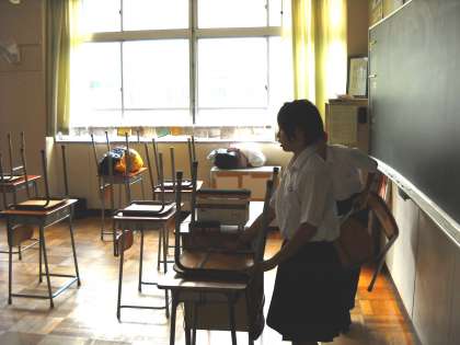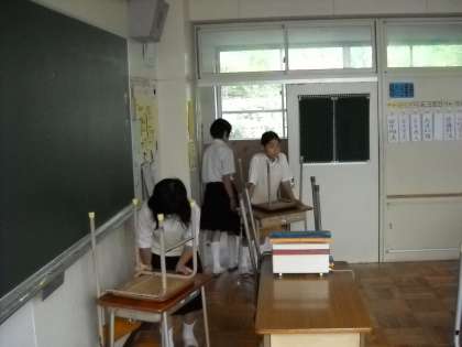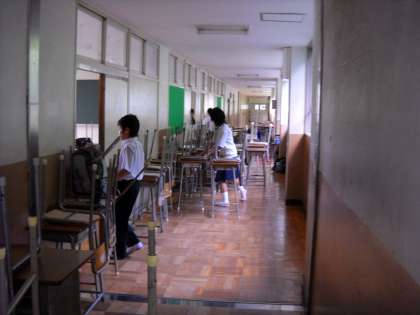 昨日の大掃除では、ワックスがけのため、机や椅子を廊下に出してありました。
