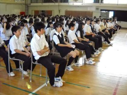 5時間目に体育館で、高尾警察署から講師としてスクールサポーターの宮内さんと山浦さんをお招きし、セーフティ教室が実施されました。
