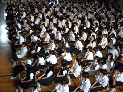 気温が高くなる中、保護者の皆様方も含めて、集中してビデオを見ることができました。