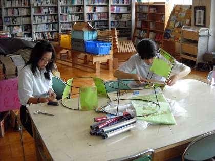今日は材料に、カラーセロファン紙が登場していました。