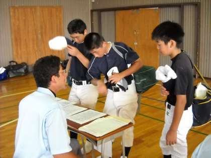 9時から柚木中学校体育館に、市内中体連野球部に所属している中学校の代表三名が参加し、秋季大会の抽選会とバッテリー講習会を行いました。恩方中学校は二回戦からとなり、対戦相手は第三中学校で18日(土)の第三試合となりました。