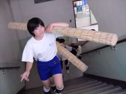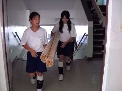 PTAの企画による室温対策として、すだれを設置する取り組みがはじまりました。