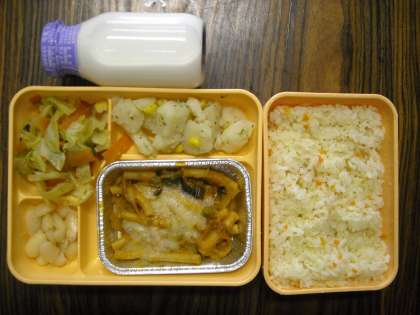 キャロットピラフ・ナスときのこのグラタン・コーンポテト・白いんげん豆のグラッセ・