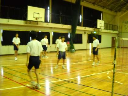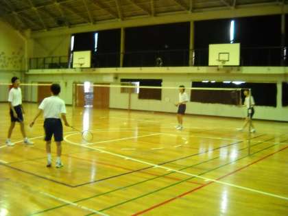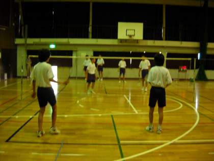 体育館で、二人対たくさん、で試合をしているように見えました。