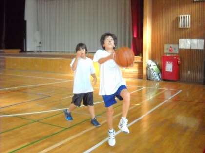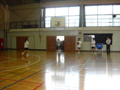 体育館ではバスケットボール部が朝練習をしていました。