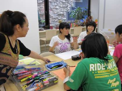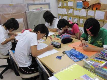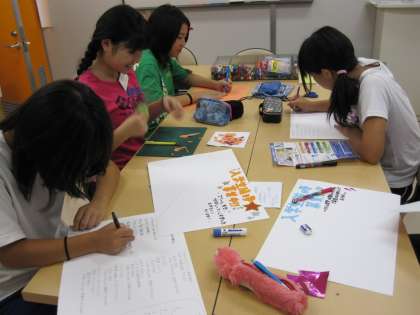 芸能スクールでは、ポスター製作の実習です。