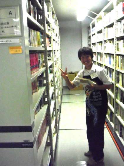図書館では、資料室の膨大な資料を前に、選び出すことが大変ですが、余裕を見せる人もいます。