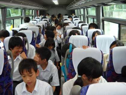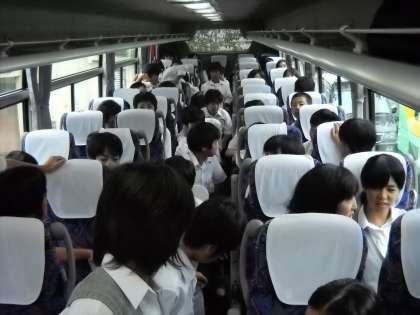 バスの中は、補助席も使って、ぎりぎりいっぱいの状態でした。