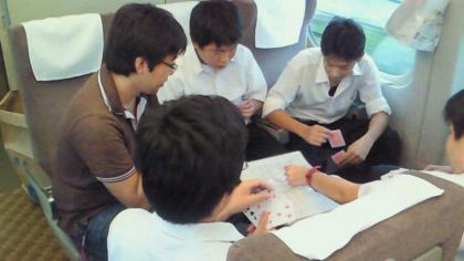 新幹線の中では、ゲームやお喋りで楽しく過ごしています!