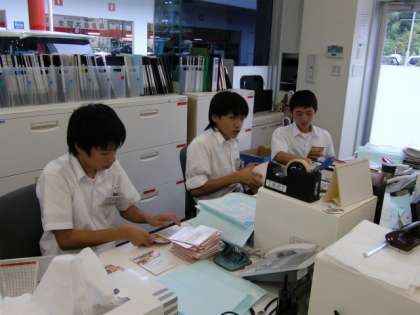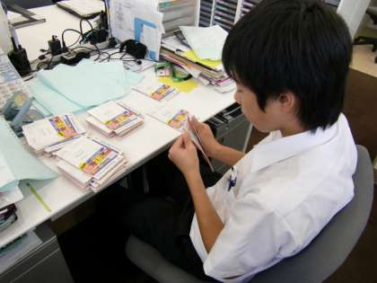 車の販売店では、ハガキの仕分けを行っていました。