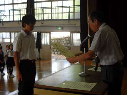 市の水泳大会の表彰がありました。