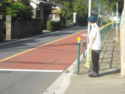 今週は秋の交通安全習慣です。要所要所に交通安全協会の方が立って、登下校指導をして下さっています。