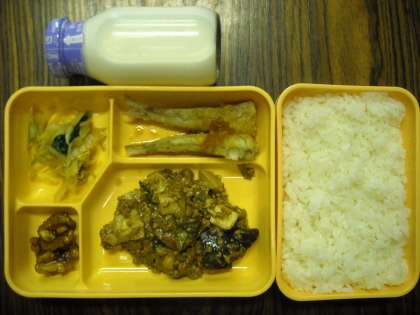 ごはん・ニギスの南蛮漬け・マーボーナス・野菜のからし和え・くるみ黒糖