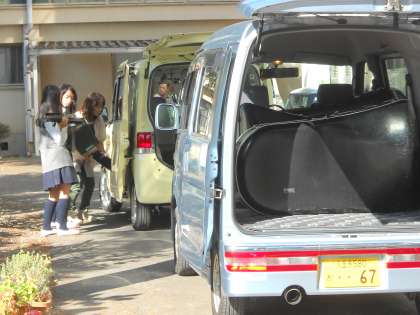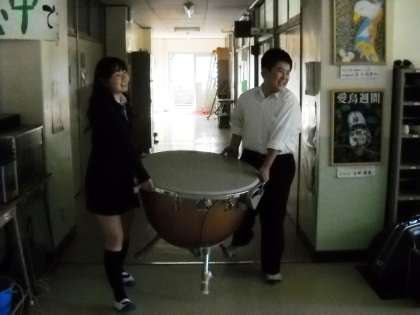 その後、保護者の皆様方の協力により、楽器の積み込みと運搬です。
