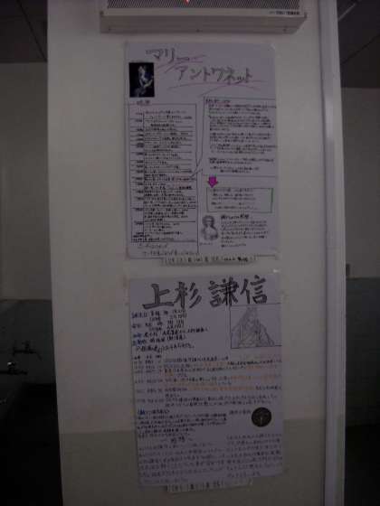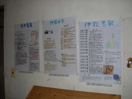 二年生の教室の廊下には、社会科の夏休みの宿題である「歴史新聞」が掲示されています。