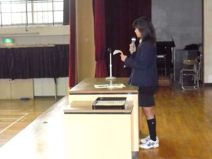 生徒会より、育成園のボランティア活動と、恩方第一小学校のウォークラリーのボランティア募集についての説明がありました。