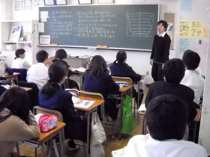 社会の授業では、人口の年齢による分布を学習していました。
