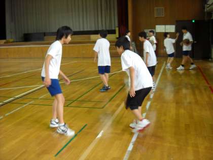 体育館で、ドリブルとディフェンスの基礎練習をしていました。