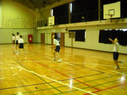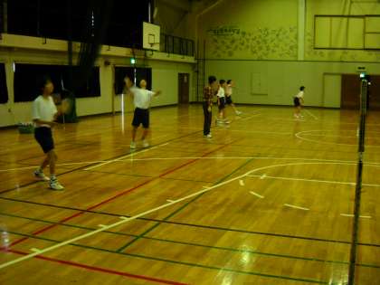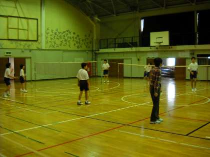体育館では、バドミントン部が活動していました。