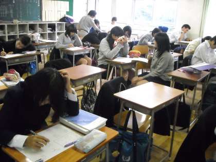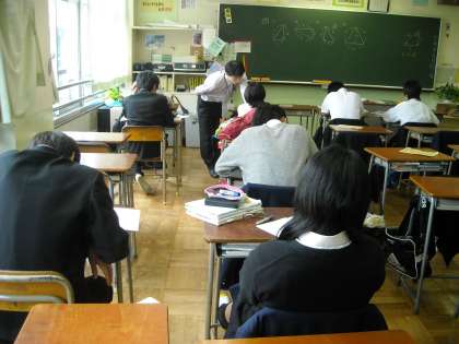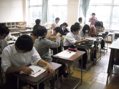 3年3・4組は数学の少人数授業です。演習を通して実践力を高めています。