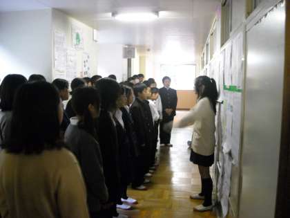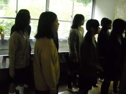 1年3組は廊下で歌っていました。力をこめて歌っていましたが。3クラスとも違った形で練習していて面白かったです。