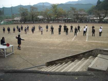 なんと2年2組は校庭に広がって大きな声を出して練習していました。