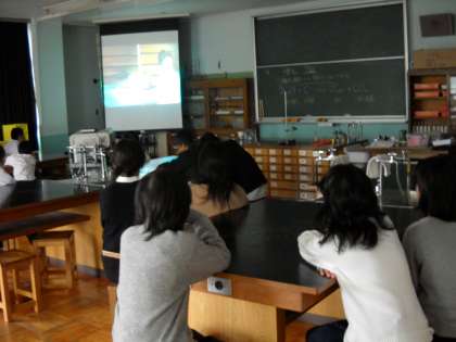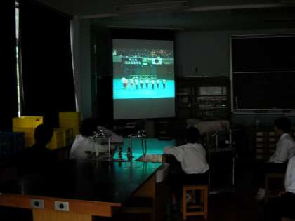 理科室でビデオを見ながらゲームの勉強です。