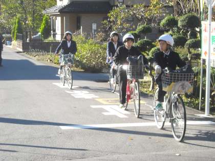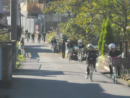 生活指導主幹の樋口先生が橋のたもとに立って、1列に並んで走行するように指導していました。