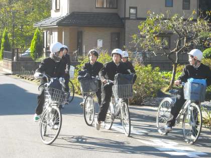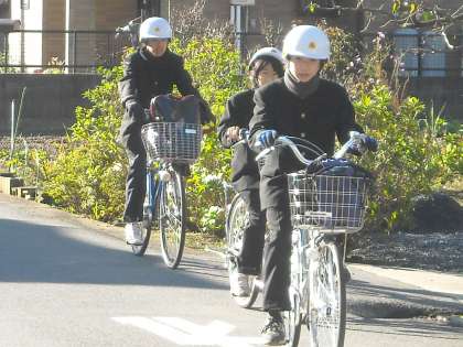 太陽の日差しが眩しくて、ヘルメットが白く輝いています。