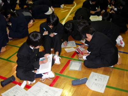 開始前に、朝礼で校長先生がお話した内容の、要点を各自がまとめていました。