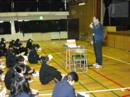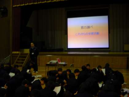 1時間目に体育館で、「恩方調べ」についての学年学習会が行われました。