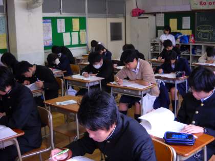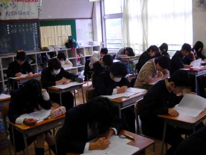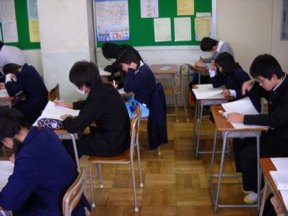 2時間目から3年生は、日ごろの学習の進み具合を確認するためのテストを行っています。